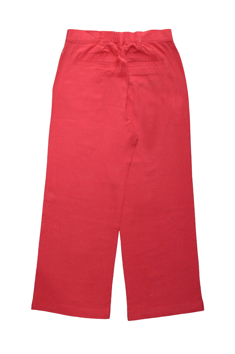 STYLE: WWG013 DESCRIPTION: LINE BLEND WIDE LEG TROUSER COMPOSITION: 55%Line 45%Viscose Solid CONSTRUCTION: 10sX10s/50X38 200GSM SIZE: 12 COLOR: RED SAMPLE TYPE: SEALER